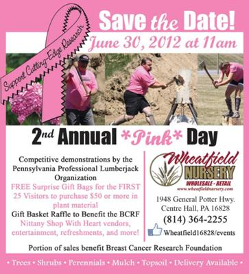 Central Pennsylvanians and Centre County take note - You won't want to miss Wheatfield Nursery's 2nd Annual PINK DAY, to be held on Saturday, June 30, 2012, from 11:00 AM - 5:00 PM