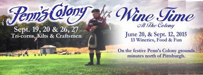 The wine-tasting festival, held minutes from Pittsburgh on the park-like grounds of Penn’s Colony, will feature: wines from 13 award-winning vintners; gourmet foods and confections; plus a marketplace of gifts created especially for wine enthusiasts by juried artisans.